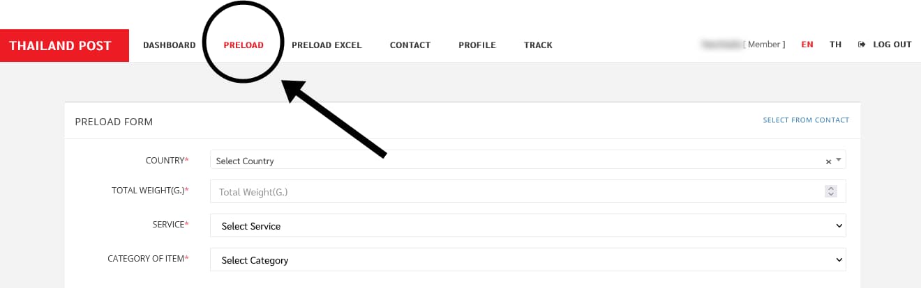 ขั้นตอนที่ 4 ให้คุณเลือกคลิ๊กที่เมนู “PRELOAD” (สร้างจ่าหน้า)