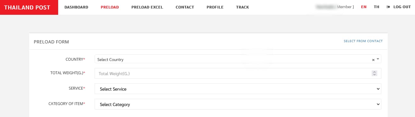 - Total Weight(G.)* ( น้ำหนัก กรัม )> น้ำหนักของกล่อง/ห่อ พัสดุ ( มีหน่วย เป็น กรัม )