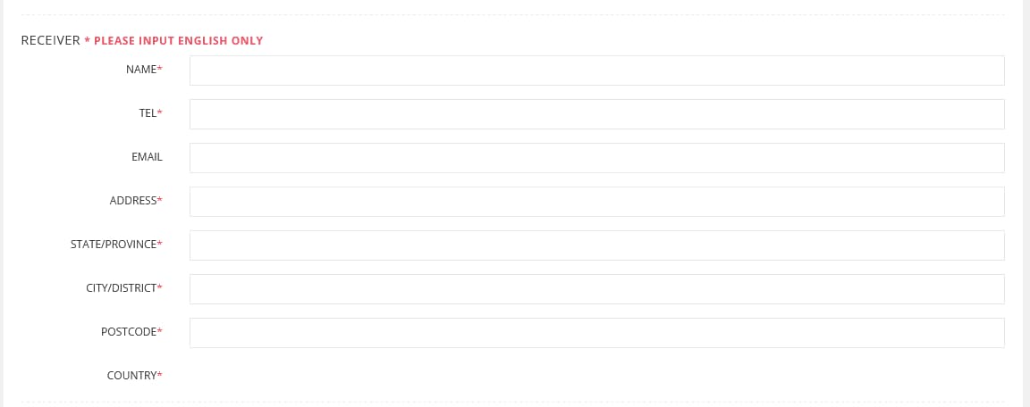 - COUNTRY* ( ประเทศ ) > เลือกประเทศของผู้ซื้อ ปลายทางที่จะส่งสินค้า