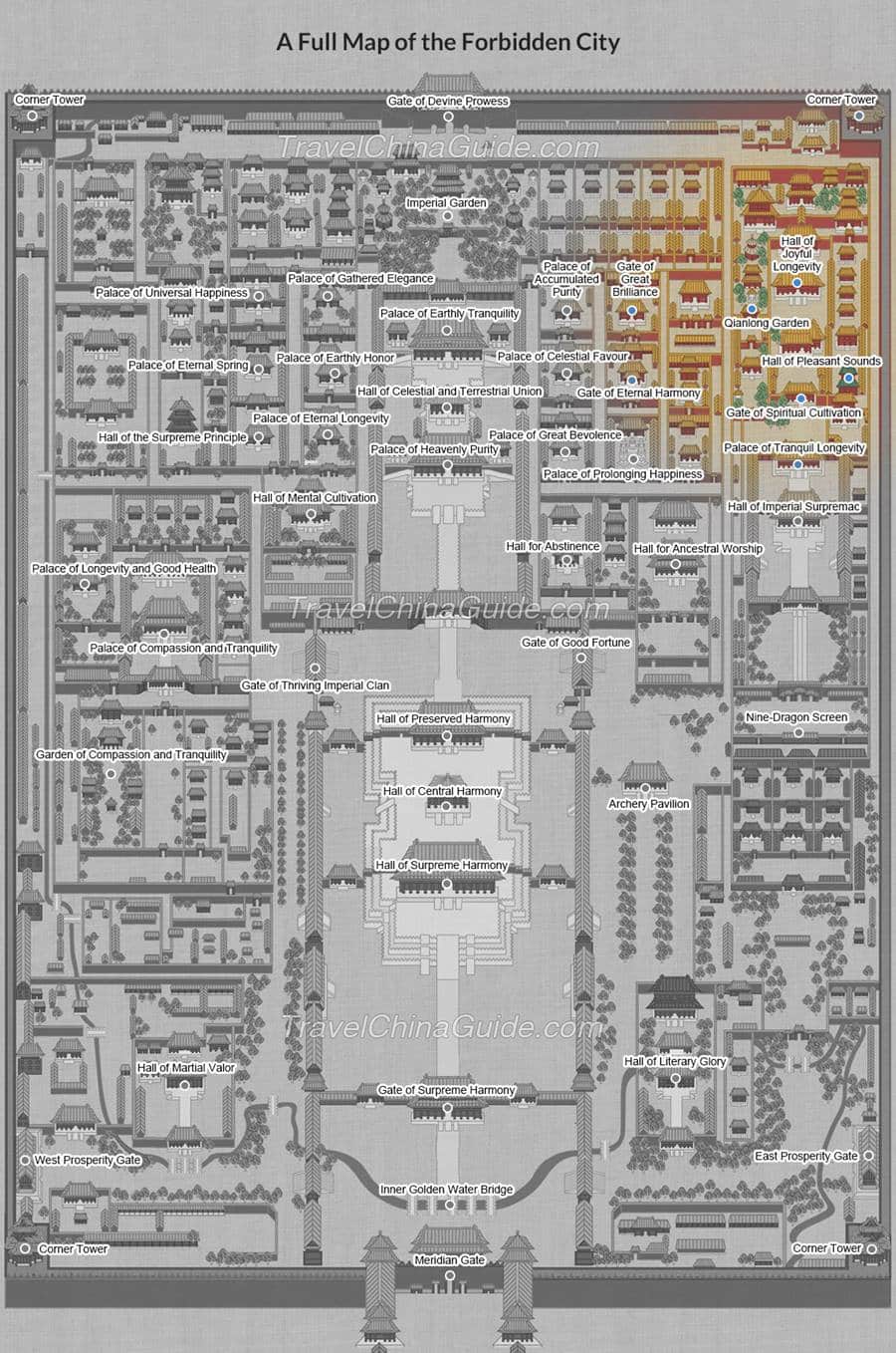 The Secret Garden หรือ Qianlong Garden ตั้งอยู่ด้านบนสุด ทางทิศตะวันออกเฉียงเหนือของ พระราชวังต้องห้าม บริเวณแห่งนี้ถูก ปิดตาย มาอย่างยาวนาน นับแต่ จักรพรรดิพระองค์สุดท้ายแห่งราชวงศ์ชิง ถูกขับออกจากพระราชวังต้องห้าม ในปีคริสต์ศักราช ๑๙๒๔ ซึ่งถือว่าเป็นปีแห่งการ ล่มสลายของราชวงศ์ชิง นับจากนั้นมา อุทยานลับ ของจักรพรรดิเฉียนหลง จึงถูกปิดเป็นความลับ ไม่เคยเปิดแก่สาธารณะชน หรือผู้ใดก็ตามที่จะได้ยลความงดงามของอุทยานแห่งนี้อีกเลย